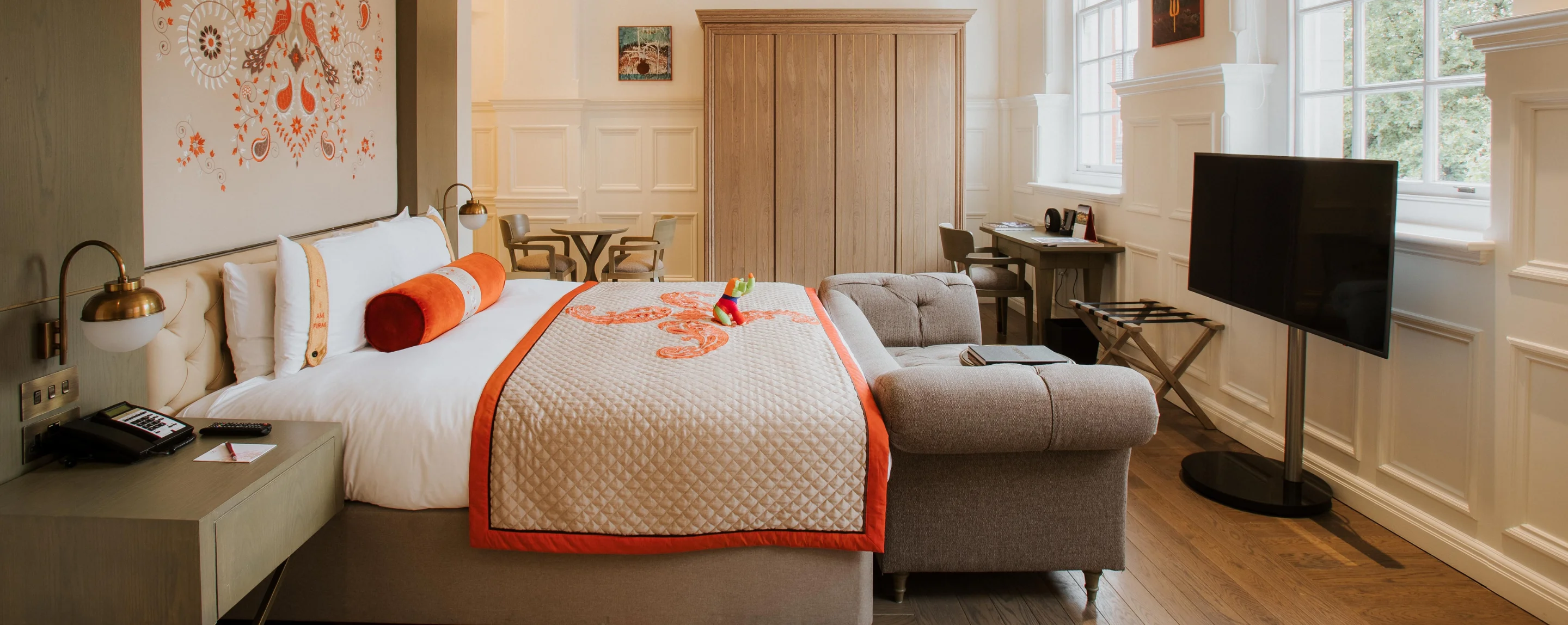 Formerly part of the Headmaster's quarters,The LaLiT Legacy Suite Two offers a tranquil yet luxurious atmosphere. The suite features a perfect blend of heritage elements and modern design, providing a grand space for relaxation and indulgence. With thoughtful attention to detail, it offers an exceptional living experience where history and elegance converge.